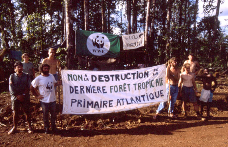 Accompagné de quelques-uns de ses fidèles écovolontaires, voyant que l’Etat français protège d’un côté et détruit de l’autre, il créa un commando écologiste, le FLUG (Front de Libération des Urubus Guyanais) et mène des actions contre les pollutions et les destructions de marais par la riziculture, l’exploitation des Ibis rouges pour faire des fleurs artificielles, la Base spatiale de Kourou et ses rejets d’alumine et d’acide chlorhydrique, le trafic de peaux de Caïmans, le trafic d’animaux sauvages vivants vers l’Europe…