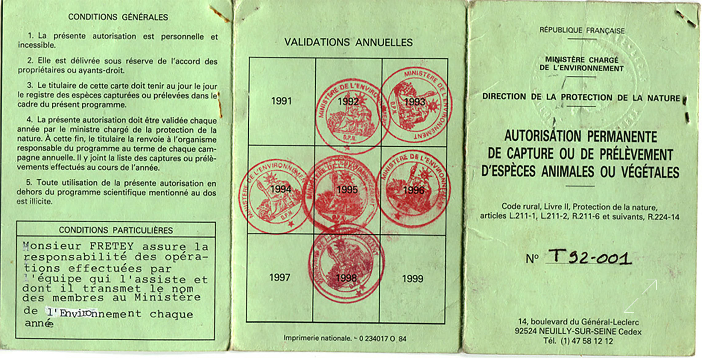 1992 : Rédacteur du projet de classement en réserve naturelle de la région de la Basse-Mana (Guyane) pour le ministère de l’Environnement.