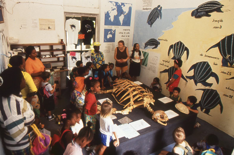 A partir des années 80, des centaines d’écoliers et de collégiens guyanais, créoles et amérindiens, seront passés par le musée de Yalimapo, et auront entendu parler de la protection de la nature pour la première fois à cette occasion. Un parcours pédagogique est organisé sous forme de jeu de piste, permettant aux élèves d’acquérir des connaissances sur les tortues marines, les milieux naturels littoraux, et la culture amérindienne. Des lycéens créoles de Cayenne, en classe de seconde, conduits par un extraordinaire professeur de biologie viennent participer aux campagnes Kawana. De même, un professeur du collège pluriethnique de Mana, vient parfois prolonger ses cours de sciences naturelles à Yalimapo. Les écoles primaires d’Awala et de M’Homgs de Javouhey deviennent des partenaires réguliers, et il devient possible de braver les tabous parentaux pour présenter les tortues marines aux enfants de façon ludique et naturaliste.