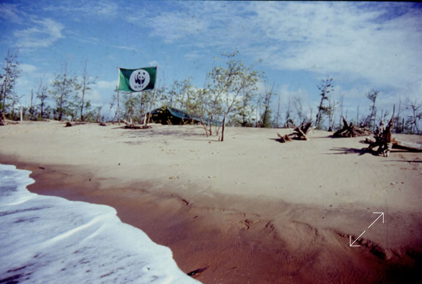 En 1977, sept Amérindiens sont recrutés Jean Lescure et Jacques dont Daniel William, fils du chef coutumier de Yalimapo. Un camp est établi sur la presqu’île sableuse longue de 3 km qui prolonge cette année-là la Pointe Isère (Apotïlï). Des prospections régulières à pied sont faites vers les différentes plages situées plus au sud-est jusqu’à la crique Organabo, afin de définir les meilleures zones de ponte à surveiller.