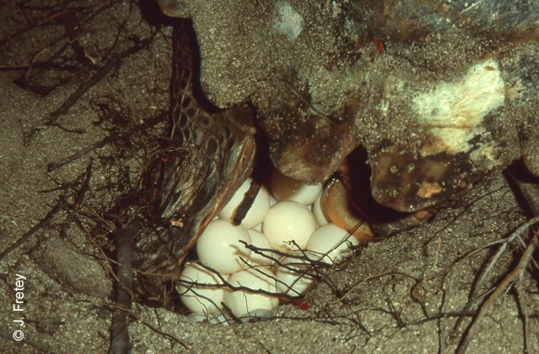 Nicole Girardin, conseillère à l’Institut Pédagogique du Gabon comprend, après un voyage en Guyane française, que les traces qu’elle observe sur la Pointe Pongara sont celles de Tortues luths venant pondre et écrit en avril 1984 au Musée Océanographique de La Rochelle. Le conservateur, Raymond Duguy, lui conseille de s’adresser à J. Fretey au Muséum national d’Histoire naturelle de Paris. Une correspondance s’établit immédiatement entre N. Girardin et Jacques, permettant un premier suivi des pontes sur la presqu’île en face de Libreville. Une mission financée par le WWF-France a lieu fin 1985, avec un survol du littoral financé par Elf-Gabon. Onze Luths femelles sont marquées pendant la saison de ponte 1985-1986. Jacques, par la voie de Marine Turtle Newsletter, informe la communauté scientifique internationale de la découverte au Gabon d’importants sites de nidification de la Tortue luth, jusqu'à la frontière congolaise. Un important site de ponte mondial avait été découvert.