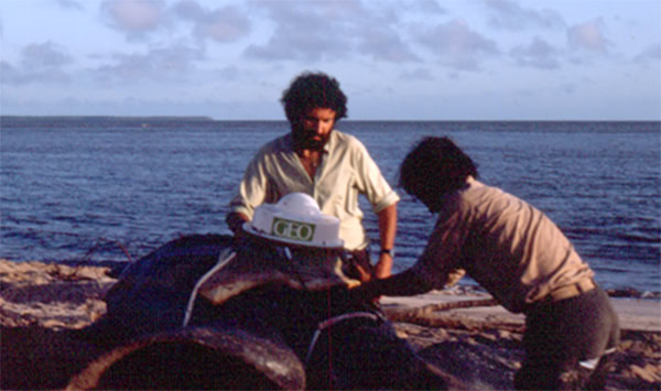 1983 : Premiers essais au monde d’équipement d’une tortue marine avec un émetteur Argos. Grâce à un mécénat de la revue Geo. Il inventera avec son technicien Jean-Marc Bretnacher un système élastique qui pourra être clipé sur une tortue en moins de 1 minute.