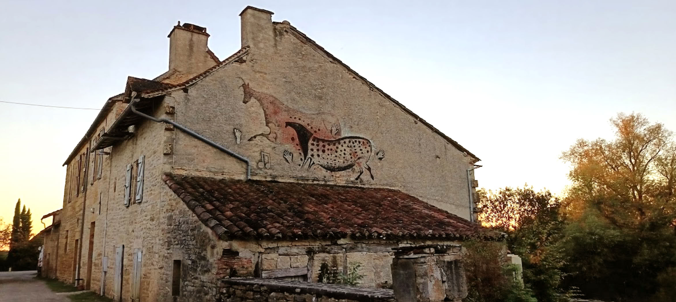 Cheval de la grotte du Pech Merle et aurochs de la grotte de Lascaux sur la façade de l'ancienne mairie
