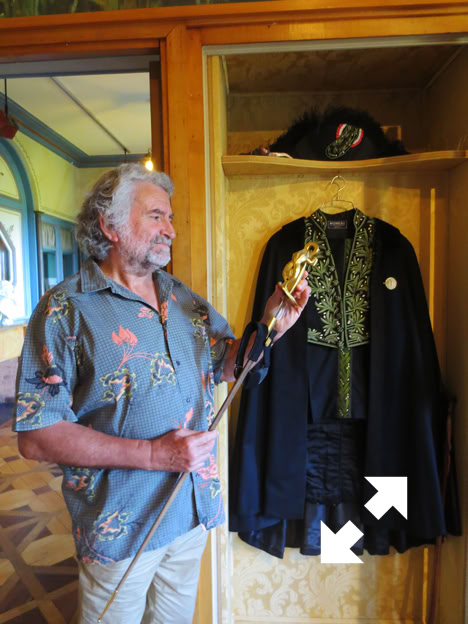 Jacques Fretey regardant l'épée d'académicien de Jean Rostand et devant son portrait jeune chasseur de papillons