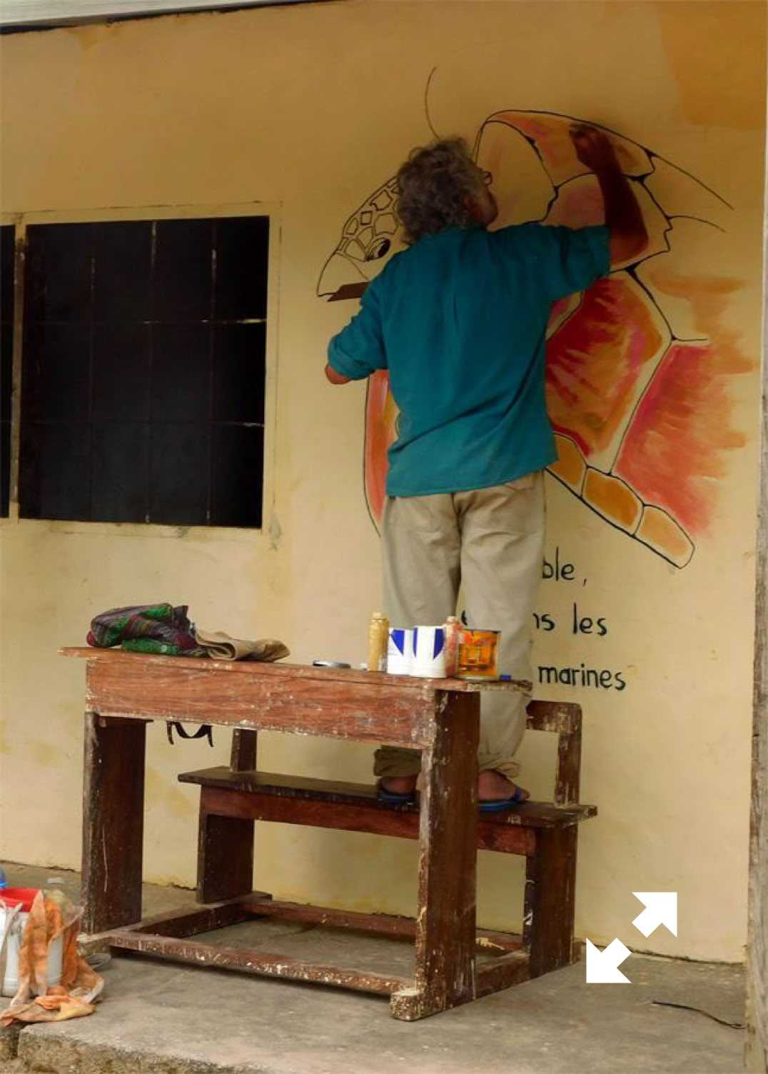 Dessin d'une Tortue imbriquée sur le mur de l'école primaire de Katfoura (archipel des Tristan, Guinée)
