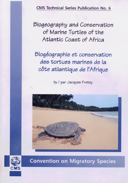 FRETEY, J., 2001. Biogeography and Conservation of Marine Turtles of the Atlantic Coast of Africa / Biogéographie et conservation des tortues marines de la côte atlantique de l’Afrique. CMS Technical Series Publication, n° 6, UNEP/CMS Secretariat, Bonn, Germany, 429 p.